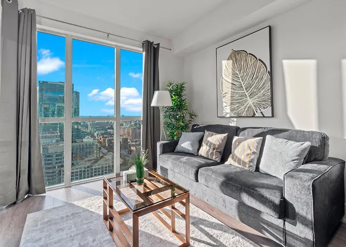 Situado en el barrio Centro de Toronto, a unos 25 minutos a pie del Estadio BMO Field, el 1-Bedroom & Den Condo Bird'S Eye View In Dt Toronto ofrece vistas al lago.